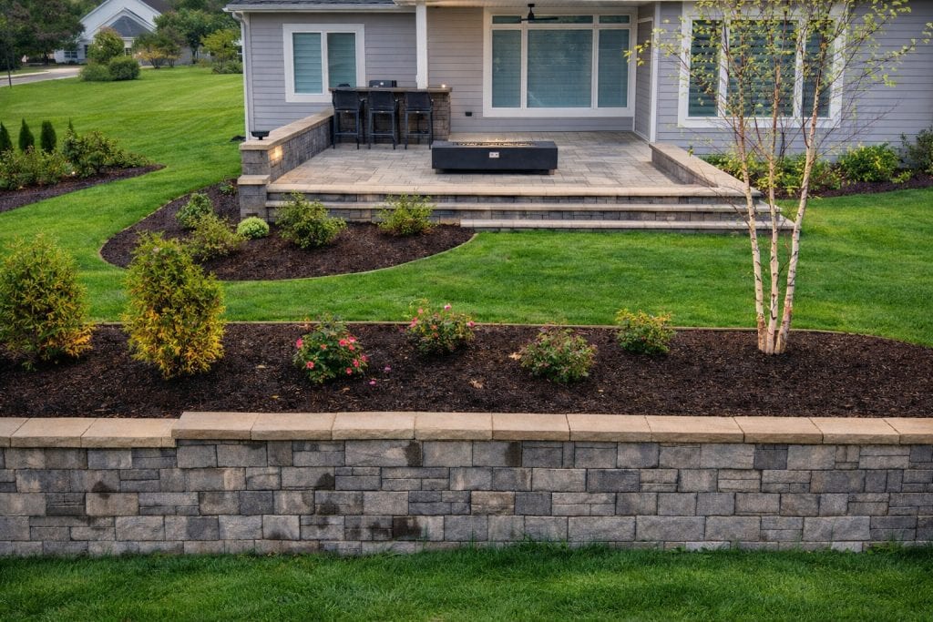 At New Vision Landscaping, we design and build custom hardscapes that transform ordinary yards into functional, beautiful outdoor living spaces. From patios and walkways to retaining walls and outdoor entertainment areas, our team delivers clean craftsmanship, structural integrity, and refined finishes that elevate your property’s appearance and value.